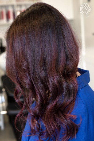 Dažymas Balayage stiliumi, su violetiniu atspalviu.
